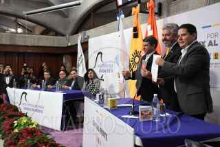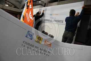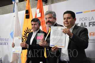 CIUDAD DE MÉXICO, 14DICIEMBRE2017.- Los dirigentes Mauricio Tabe (PAN); Raul Flores (PRD), y Octavo Rivero (Movimiento Ciudadano), registraron la alianza electoral "CDMX al Frente" en el Instituto Electoral de la Ciudad de México, les recibió la documentación el Consejero Presidente Mario Velázquez Miranda. FOTO: VALERIA MÁRQUEZ /CUARTOSCURO.COM
