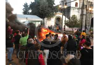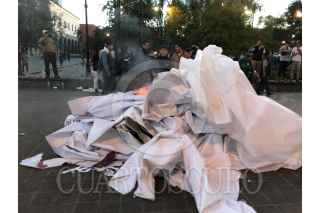 CIUDAD DE MÉXICO, 15DICIEMBRE2017.- Tras suscitarse un gresca con integrantes de MORENA y trabajadores de la Delegación Coyoacán, algunas personas quemaron lonas y mantas de MORENA en el jardín hidalgo ubicado en el centro de la delegación Coyoacán. FOTO: CUARTOSCURO.COM