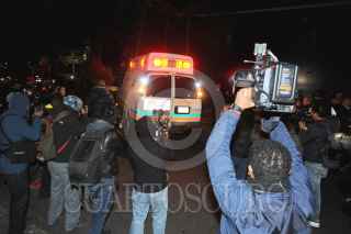 CIUDAD DE MÉXICO., 16DICIEMBRE2017.- Esta madrugada, alrededor de las 02:30 am, arribo a su domicilio de arraigo, ubicado en la calle Galileo # 9 en la colonia Polanco, la Maestra Elba Esther Gordillo, en donde culminara su proceso penal, por los delitos de lavado de dinero y delincuencia organizada. La Maestra, arribo en una ambulancia del CRUM, tapada totalmente con una sábana de color blanco y acompañada de personal policiaco de la Agencia de Investigación Criminal, (PGR). FOTO: LUIS CARBAYO /CUARTOSCURO.COM
