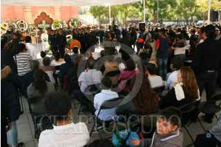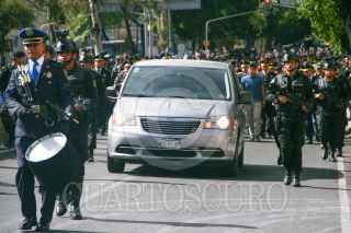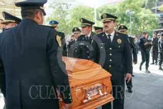 CIUDAD DE MÉXICO, 16DICIEMBRE2017.- Ceremonia de cuerpo presente de un policia auxiliar acaecido el día de ayer en el cumplimiento de su deber. Edgar Bautista, Hiram Almeida así como familiares acudieron a la despedida del policia, en la plaza Tlaxcoaque. FOTO: VICTORIA VALTIERRA /CUARTOSCURO.COM
