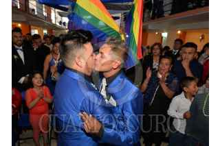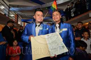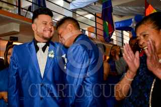 TOLUCA, ESTADO DE MÉXICO, 16DICIEMBRE2017.- Victor y Raymundo se convirtieron en la primer pareja del mismo sexo en contraer matrimonio por el civil en el Estado de México, después de haber emprendido una lucha legal y obtener un amparo de los juzgados federales, acompañados por sus familiares y amigos celebraron su unión. FOTO: ARTEMIO GUERRA BAZ /CUARTOSCURO.COM