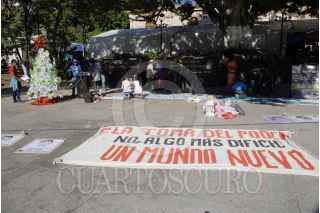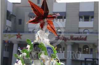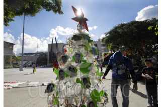 CILPANCINGO, GUERRERO. 16DICIEMBRE2017.- Estudiantes de la normal rural Raúl Isidro Burgos de Ayotzinapa, colocaron un árbol de Navidad con fotografías de los 43 desparecidos en Iguala en la plaza Primer Congreso de Anáhuac. FOTO: JOSÉ I. HERNÁNDEZ /CUARTOSCURO.COM
