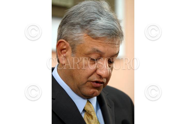 MEXICO, D.F. 24 NOVIEMBRE 2004.- Andrés Manuel López Obrador, jefe de Gobierno del D.F. se despide de los asistentes a la 5ta entrega de becas a personas discapacitadas, realizada en la explanada del zócalo. FOTO: Sandra Perdomo/CUARTOSCURO.COM