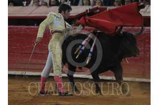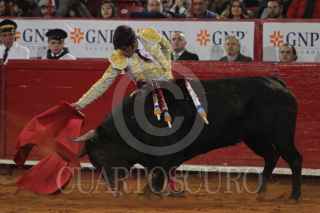 CIUDAD DE MÉXICO, 17DICIEMBRE2017.- El torero Fermín Rivera, durante su actuación en la Plaza de Toros México. El potosino tuvo complicaciones con el segundo toro de su lote, el cual se escapó vivo a los corrales. FOTO: GABINO ACEVEDO /CUARTOSCURO.COM