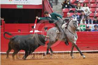 CIUDAD DE MÉXICO, 17DICIEMBRE2017.- El rejoneador Andy Cartagena, durante su reaparición en el ruedo de la Plaza de Toros México, realizando dos actuaciones para el público asistente. FOTO: GABINO ACEVEDO /CUARTOSCURO.COM