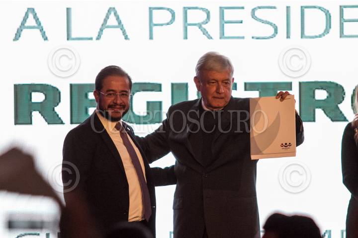 CIUDAD DE MÉXICO, 18DICIEMBRE2017.- Cuauhtémoc Blanco, alcalde de Cuernavaca, y Andrés Manuel López Obrador, precandidato a la presidencia de la república por Morena, durante su registro para contender en la coalición "Juntos Haremos Historia" en las elecciones de 2018 por estos institutos políticos. FOTO: GALO CAÑAS /CUARTOSCURO.COM