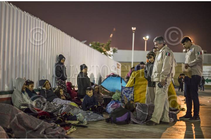 TIJUANA BAJA CALIFORNIA, 19DICIEMBRE2017.- Pese al intenso frío que se registra en la ciudad fronteriza, un grupo de 300 migrantes desplazados por la violencia en Michoacan y Guerrero, pasan su quinta noche a la intemperie en la entrada peatonal de la garita internacional de El Chaparral con la intensión pedir asilo humanitario en Estados Unidos. Al grupo se unió otro de aproximadamente 50 migrantes haitianos y centroamericanos. FOTO: CHRISTIAN SERNA /CUARTOSCURO.COM