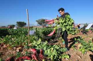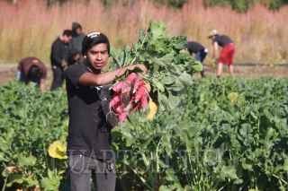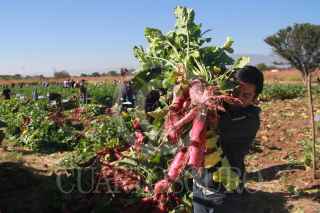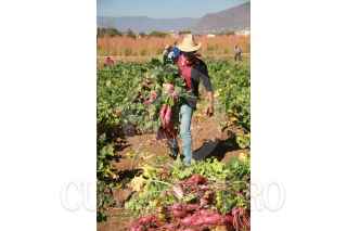 SANTA CRUZ XOXOCOTLÁN, OAXACA, 19DICIEMBRE2017.- Hortelanos de diversas edades cosechar este día al rededor de 14 toneladas de rábanos de las especies Bartender y Champion, mismos que utilizarán para participar en la tradicional Noche de Rábanos, festival con más de 100 años de tradición que se llevará a cabo el 23 de diciembre en el zócalo de la ciudad de Oaxaca y en el que los participantes crearán diversas obras con los tubérculos cosechados, para ello de acuerdo con las reglas únicamente podrán hacer uso de un cuchillos y palillos. FOTO: ARTURO PÉREZ ALFONSO/ CUARTOSCURO.COM