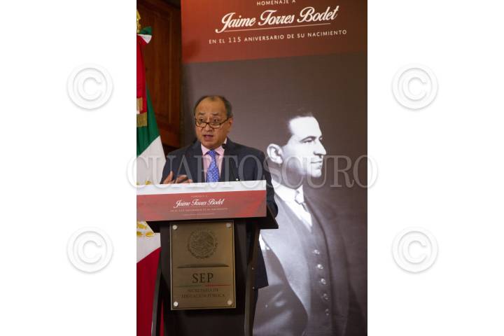 CIUDAD DE MÉXICO, 20DICIEMBRE2017.- José Carreño Carlon, director del Fondo de Cultura Económica, y el títular de la SEP Otto Granados Roldan, encabezaron el Homenaje a Jaime Torres Bodet, que se realiza en las oficinas de la Secretaría de Educación Pública. FOTO: VICTORIA VALTIERRA /CUARTOSCURO.COM