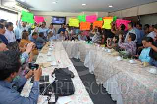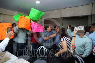 TUXTLA GUTÉRREZ, CHIAPAS, 21DICIEMBRE2017.- Manifestantes boicotearon una conferencia de prensa de la coalición PRD, PAN y MC en un hotel del municipio. FOTO: JACOB GARCÍA /CUARTOSCURO.COM