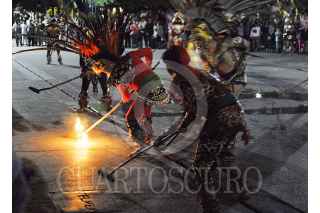 CHILPANCINGO, GUERRERO, 21DICIEMBRE2017.- Imágenes del juego de pelota prehispánico Águilas contra Jaguares, que se llevó acabo en la plaza primer Congreso de Anáhuac, como parte de Juegos Tradicionales que organiza los integrantes de Calpulli Tecuanichan. FOTO: JOSÉ I. HERNÁNDEZ / CUARTOSCURO.COM