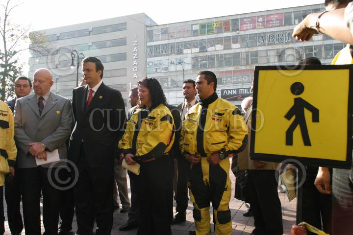 MEXICO, D.F. 25NOVIEMBRE2004.- Marcelo Ebrard, secretario de seguridad Públicadel D. F. y Fernando Shütte, Consejo Ciudadano de Seguridad Pública caminan por la calle de Pino Suarez durante la conmemoración del Día del Peatón. FOTO: Nelly Salas/CUARTOSCURO.COM