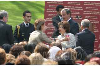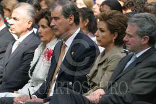 MEXICO, D.F. 25NOVIEMBRE2004.- Rafael Macedo de la Concha, Procurador General de Justicia; Patricia Espinoza, Directora del Instituto de la Mujer; Vicente Fox, Presidente de la República, Marta Sahagún, primera dama y Santiago Creel, Secretario de Gobernación durante el Día Internacional para la Eliminación de la Violencia contra la Mujer. FOTO: Nelly Salas/CUARTOSCURO.COM