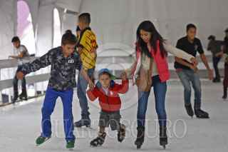 GUADALAJARA, JALISCO, 22DICIEMBRE2017.- Cientos de personas de todas las edades aprovechan la temporada vacacional y navideña para divertirse en la pista de hielo ubicada en la explanada 18 de Marzo, una de las atracciones que implemento el ayuntamiento tapatío en esta temporada decembrina. FOTO: FERNANDO CARRANZA GARCIA / CUARTOSCURO.COM