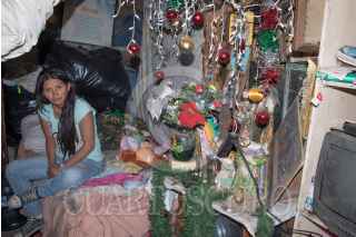 LOS REYES LA PAZ, ESTADO DE MÉXICO, 24DICIEMBRE2017.- Mientras miles de familias esperan los regalos y las suculentas cenas de navidad, otras no corren con la misma suerte, como es el caso de una familia que se dedica a la recolección de basura y que habita en una casa de cartón de 4 metros cuadrados ubicada a las orillas de las vías del tren en los límites de los municipios de Los Reyes La Paz y Chimalhuacán. En dicho lugar cenarán un pozole con los 80 pesos que tienen de presupuesto para comer durante la noche buena, los regalos de navidad para los ocho niños que habitan en la casa, al parecer, no llegarán. FOTO: SAÚL LÓPEZ /CUARTOSCURO.COM