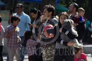 CIUDAD DE MÉXICO, 25DICIEMBRE2017.- Familias se reúnen en la explanada de parque México tras activarse la alerta sísmica en la capital. Según autoridades el sismo se regitró en las costas de Guerrero con una magnitud de 5.4 grados en la escala de Richter. FOTO: GALO CAÑAS /CUARTOSCURO.COM