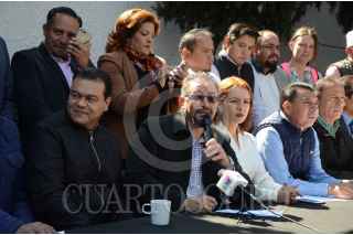 TOLUCA, ESTADO DE MEXICO, 26DICIEMBRE2017.- Omar Ortega, presidente estatal del PRD e integrantes del Grupo La Fuerza del Sur, integrado por alcaldes y diputados del sur de la entidad informaron sobre la creación de un bloque para respaldar a Juan Zepeda como precandidato a la Senaduria en las elecciones del 2018. FOTO: ARTEMIO GUERRA BAZ /CUARTOSCURO.COM