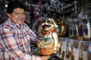 PUEBLA, PUEBLA, 27DICIEMBRE2017.- A unos días de la celebración de año nuevo se comercializan amuletos y artículos esotéricos propios del año nuevo, principalmente veladoras, borregos y la figura del perro que representa al año 2018 en el calendario chino. FOTO: HILDA RÍOS /CUARTOSCURO.COM