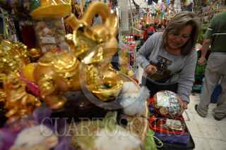 TOLUCA, ESTADO DE MEXICO, 29DICIEMBRE2017.- Para recibir el Año Nuevo muchas personas visitan el local de Toñita, en el Mercado 16 de Septiembre, para que les prepare algún amuleto para llamar la buena suerte en el amor, dinero, trabajo o negocio, velas, figuras de buda, talismanes, perfumes, son algunas de las cosas que se pueden encontrar aquí. FOTO: ARTEMIO GUERRA BAZ /CUARTOSCURO.COM