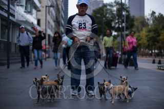 CIUDAD DE MÉXICO, 31DICIEMBRE2017.- Un hombre pasea a sus ocho perros chihuahuas sobre avenida Juárez. FOTO: ADOLFO VLADIMIR /CUARTOSCURO.COM