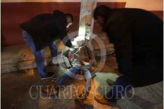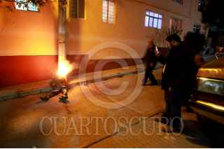 OAXACA, OAXACA, 01ENERO2018.- Como es tradición, en México miles de personas despidieron el año con la quema del "Año Viejo", en Oaxaca una familia preparó su figura con ropa, cartón y cohetes de diversos tipos, al llegar el reloj a las creo horas le prendieron fuego para recibir así el 2018. FOTO: ARTURO PÉREZ ALFONSO/ CUARTOSCURO.COM