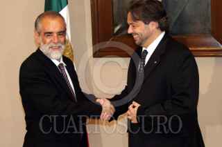 México, D.F., 02DICIEMBRE2004.- Diego Fernández de Cevallos, presidente de la mesa directiva del senado, recibió a Ernest Benachi, primer ministro de Cataluña, en el Senado de la República. FOTO: Moisés Pablo/CUARTOSCURO.COM