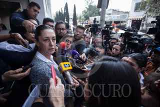 CIUDAD DE MÉXICO, 03ENERO2018.- Claudia Sheinbaum, precandidata por Morena para el Gobierno de la Ciudad, a su salida de la Procuraduría General de Justicia, en donde presentó una denuncia por el robo del cual fue objeto su coordinador de campaña delegacional de Iztacalco. FOTO: ADOLFO VLADIMIR /CUARTOSCURO.COM