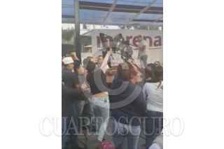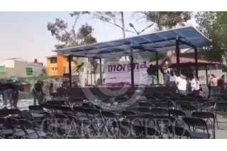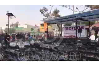 CIUDAD DE MÉXICO, 03ENERO2018.- Presuntos seguidores del perredista Mauricio Toledo irrumpieron violentamente en un evento de la precandidata de Morena a la Jefatura de Gobierno, Claudia Sheinbaum, los agresores aventaron sillas , jitomates y huevos. La gresca se suscitó en un mitin en la colonia Villa Quietud, delegación Coyoacán. Sheinbaum reanudó el mitin y llamó a la Secretaría de Seguridad Pública a que resguarde la seguridad de sus eventos. FOTO: CUARTOSCURO.COM