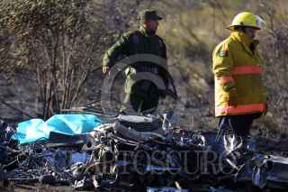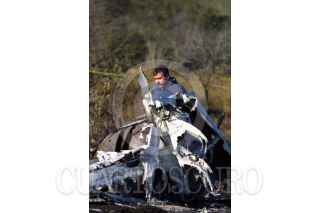 CIENEGA DE FLORES, NUEVO LEON 14DICIEMBRE2004.- Cinco tripulantes de una avioneta doble motor perdieron la vida minutos después de despegar del aeropuerto del norte del municipio de Escobedo. Hasta ahora, se desconoce la causa del accidente. FOTO: Jorge López/CUARTOSCURO.COM