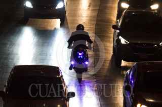 CIUDAD DE MÉXICO, 04ENERO2018.- Motociclista transita en los carriles centrales del Circuito Interior. FOTO: MOISÉS PABLO /CUARTOSCURO.COM