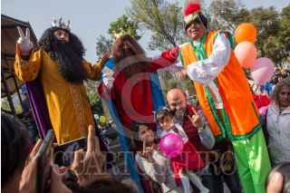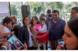 CIUDAD DE MÉXICO, 05ENERO2018.- Alejandra Barrales, precandidata a la jefatura de gobierno por el PRD, PAN y Movimiento Ciudadano, acompañada de su hija, asisitió al evento "Somos Más", donde repartieron pelotas y globos por el Día de Reyes Magos en el Kiosko de Alameda Central. FOTO: TERCERO DÍAZ /CUARTOSCURO.COM