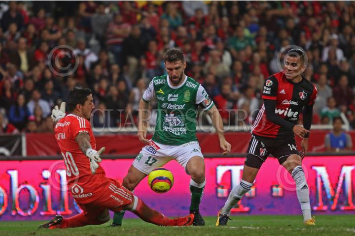 GUADALAJARA, JALISCO. 05ENERO2018.- Milton Caraglio jugador de Atlas se levanta después de una jugada fuerte con el contrario, en partido correspondiente a la Jornada 1 del Torneo Clausura 2018 de la Liga MX, en donde se enfrentan los equipos de los Zorros del Atlas vs Panzas Verdes de León, en juego que se lleva a cabo en el Estadio Jalisco . El marcador al final del encuentro fue de 2-1 a favor del equipo visitante. FOTO: FERNANDO CARRANZA GARCIA / CUARTOSCURO.COM
