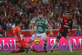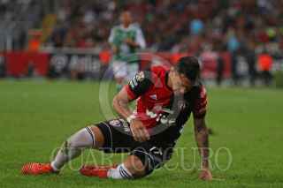 GUADALAJARA, JALISCO. 05ENERO2018.- Milton Caraglio jugador de Atlas se levanta después de una jugada fuerte con el contrario, en partido correspondiente a la Jornada 1 del Torneo Clausura 2018 de la Liga MX, en donde se enfrentan los equipos de los Zorros del Atlas vs Panzas Verdes de León, en juego que se lleva a cabo en el Estadio Jalisco . El marcador al final del encuentro fue de 2-1 a favor del equipo visitante. FOTO: FERNANDO CARRANZA GARCIA / CUARTOSCURO.COM