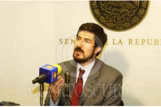 MEXICO, D.F. 15DICIEMBRE2004.- El senador Javier Corral Jurado, presidente de la Subcomisión de Radio y Televisión del Senado de la República, durante la conferencia de prensa ofrecida a representantes de diversos medios de comunicación, en la cámara alta. FOTO: CUARTOSCURO.COM