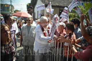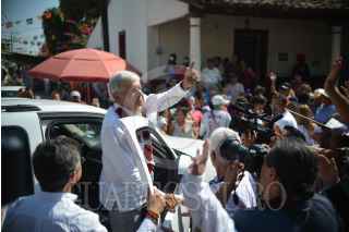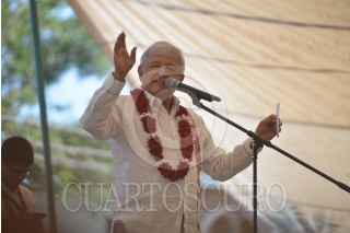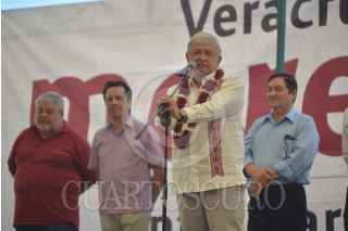 ACTOPAN, VERACRUZ, 08ENERO2018.- Andrés Manuel López Obrador, precandidato presidencial por MORENA visitó el municipio acompañado del precandidato a la gobernatura Cuitláhuac García Jiménez además de Ricardo Ahued Bardahuil y Rocío Nahle, en su mensaje aseguró que acabará con la corrupción en el país además de la rehabilitación de 6 refinerías y la creación de otras dos. FOTO: ALBERTO ROA /CUARTOSCURO.COM