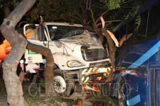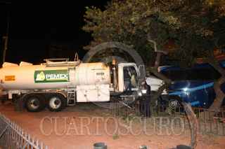 CIUDAD DE MÉXICO., 10ENERO2018.- Una pipa de PEMEX que era conducida por una joven, se impactó contra un árbol y un autobús que se encontraba estacionado, sobre eje 10 a la altura de la calle Contlalco en la colonia Pedregal De Santo Domingo en Coyoacán. La mujer fue trasladada a un hospital cercano con lesiones leves. FOTO: LUIS CARBAYO /CUARTOSCURO.COM