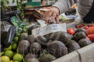 CIUDAD DE MÉXICO, 10ENERO2018.- El precio del kilogramo de aguacate en mercados de la capital se mantiene en un promedio de $50 y $60 pesos. En lo que va del año, varios productos de la canasta básica aún incrementado sus precios debido al aumento en combustibles. FOTO: MARIO JASSO /CUARTOSCURO.COM