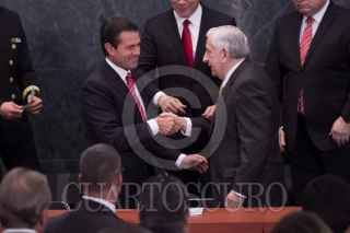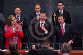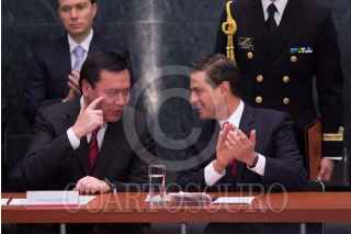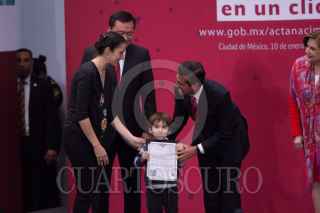 CIUDAD DE MÉXICO, 10ENERO2018.- Miguel Ángel Osorio Chong, secretario de Gobernación anunció su renuncia durante la presentación encabezada por el presidente Enrique Peña Nieto del programa "Soy México", iniciativa federal que permite a los mexicanos la impresión de una copia de su acta de nacimiento desde cualquier dispositivo móvil y con validez alrededor del mundo como documento oficial. Durante el acto fueron entregadas cinco actas de nacimientos. FOTO: GALO CAÑAS /CUARTOSCURO.COM