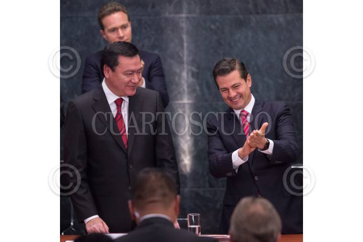 CIUDAD DE MÉXICO, 10ENERO2018.- Miguel Ángel Osorio Chong, secretario de Gobernación anunció su renuncia durante la presentación encabezada por el presidente Enrique Peña Nieto del programa "Soy México", iniciativa federal que permite a los mexicanos la impresión de una copia de su acta de nacimiento desde cualquier dispositivo móvil y con validez alrededor del mundo como documento oficial. Durante el acto fueron entregadas cinco actas de nacimientos. FOTO: GALO CAÑAS /CUARTOSCURO.COM
