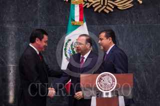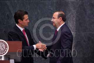 CIUDAD DE MÉXICO, 10ENERO2018.- Alfonso Navarrete Prida, nuevo secretario de Gobernación, y el presidente Enrique Peña Nieto al termino del nuevo nombramiento de títulares de la secretaría de Gobernación y de Desarrollo Social, tras la renuncia de Miguel Ángel Osorio Chong y Luis Enrique Miranda Nava. FOTO: GALO CAÑAS /CUARTOSCURO.COM