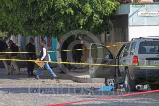 TLAQUEPAQUE, JALISCO, 10ENERO2018.- Tres hombres perdieron la vida al ser agredidos por sujetos armados en los cruces de las calles de 16 de Septiembre e Independencia en la colonia Toluquilla en dicho municipio, en el lugar de los hechos quedaron esparcidos al menos una treintena de casquillos de bala y al mismo arribaron personal de la Fiscalía General del Estado, policía municipal así como del Instituto Jalisciense de Ciencia Forenses, mismos que se encargaron del levantamiento de indicios al igual que de los cuerpos. FOTO: FERNANDO CARRANZA GARCIA / CUARTOSCURO.COM