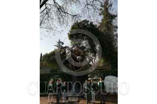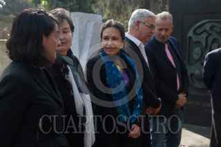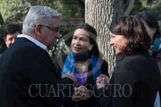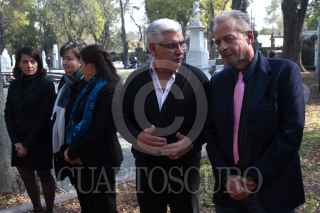 CIUDAD DE MÉXICO, 11ENERO2018.- Carlos Ruiz Abreu, Lidia Camacho, directora general del Instituto General de Bellas Artes (INBA), y Taiyana Pimentel, durante la ceremonia por 44 aniversario luctuoso del pintor David Alfaro Siqueiros, que se realizó en la Rotonda de las Personas Ilustres del Panteón Civil de Dolores. FOTO: MOISÉS PABLO /CUARTOSCURO.COM