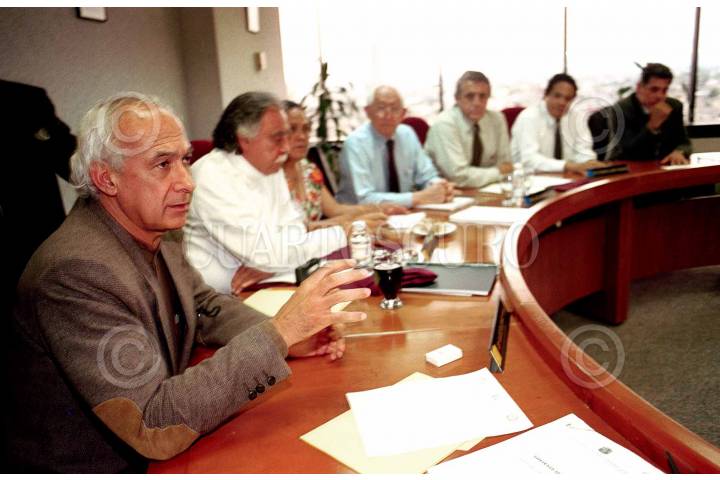 Carlos Payán Velver (PRD), Aurora Bazán (PVEM) y Luis H. Alvarez (PAN) durante la reunión de la Comisión de Concordia y Pacificación, leyeron un comunicado a los medios de información. FOTO: Victoria Valtierra/CUARTOSCURO.COM