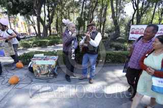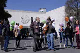 CIUDAD DE MÉXICO, 13ENERO2018.- Óscar Chávez, cantautor mexicano, recorrió la explana del Museo Nacional de Antropología, el jardín de la Ciudadela y la avenida Madero, para cantar algunas de sus canciones y ayudar con la recolección de firmas para Maria de Jesús Patricio Martínez, Marichuy, vocera del Concejo Indígena de Gobierno y quien busca la candidatura independiente a la presidencia de la República. FOTO: ADOLFO VLADIMIR /CUARTOSCURO.COM