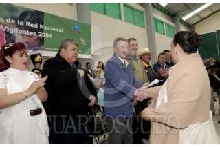 QUERETARO, AMEALCO, 16 DICIEMBRE 2004.- El secretario de Gobernación, Santiago Creel durante el primer Congreso de la red nacional de mujeres vigilantes, realizado en el Auditorio Santiago Mexquitlan. FOTO: Javier Tapia/ CUARTOSCURO.COM