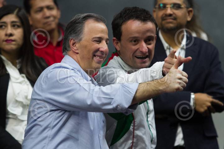 CIUDAD DE MÉXICO, 14ENERO2018.- José Antonio Meade Kuribreña, precandidato del PRI a la Presidencia de la República, convivió con integrantes de la Confederación Revolucionaria de Obreros y Campesinos (CROC), en el Frontón México, en donde también observó un partido de jai alai protagonizado por Mikel Arriola, precandidato del PRI a la Jefatura de Gobierno. FOTO: MOISÉS PABLO /CUARTOSCURO.COM