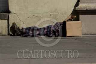 CIUDAD DE MÉXICO, 14ENERO2018.- Cubierto con sólo una cobija y una caja de cartón un hombre duerme sobre la banqueta de avenida Juárez. FOTO: GALO CAÑAS /CUARTOSCURO.COM