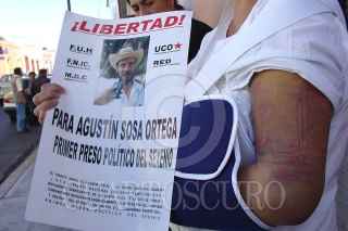CANCUN, QUINTANA ROO, 16DICIEMBRE2004.- Después de siete días de haber sido detenido el dirigente del Frente Unico Huatleco , Agustín Sosa, integrantes del mismo frente acompañados de los hijos y la esposa del mismo quien fue golpeada y maltratada a la hora de la aprehensión de su esposo, se manifestaron y exigieron la liberación de su dirigente ante el Tribunal Superior de Justicia del estado. FOTO: Blanca Esthela Hernández/CUARTOSCURO.COM