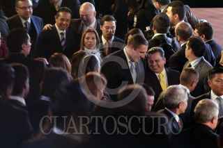 PUEBLA, PUEBLA, 15ENERO2018.- El ex gobernador de Puebla; Rafael Moreno Valle, acompañado por Manuel Granados; dirigente nacional del PRD, a su llegada al informe de gobierno de Antonio Gali Fayad que se llevó a cabo en el Auditorio de la Reforma de la capital poblana. FOTO: HILDA RÍOS/CUARTOSCURO.COM
