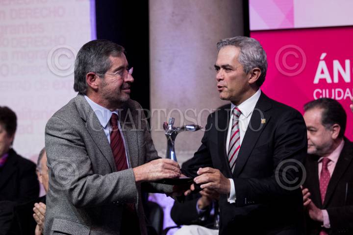 CIUDAD DE MÉXICO, 15ENERO2018.- Miguel Ángel Mancera, jefe de gobierno de la Ciudad de México, encabezó la entrega del reconocimiento “Ángel de la Ciudad” a personas de la sociedad civil y académicos que han impulsado el desarrollo de la capital. En la imagen, Mancera Espinosa entregó el reconocimientos a personal del ERUM por su participación durante el terremoto del pasado 19 de septiembre. FOTO: GALO CAÑAS /CUARTOSCURO.COM